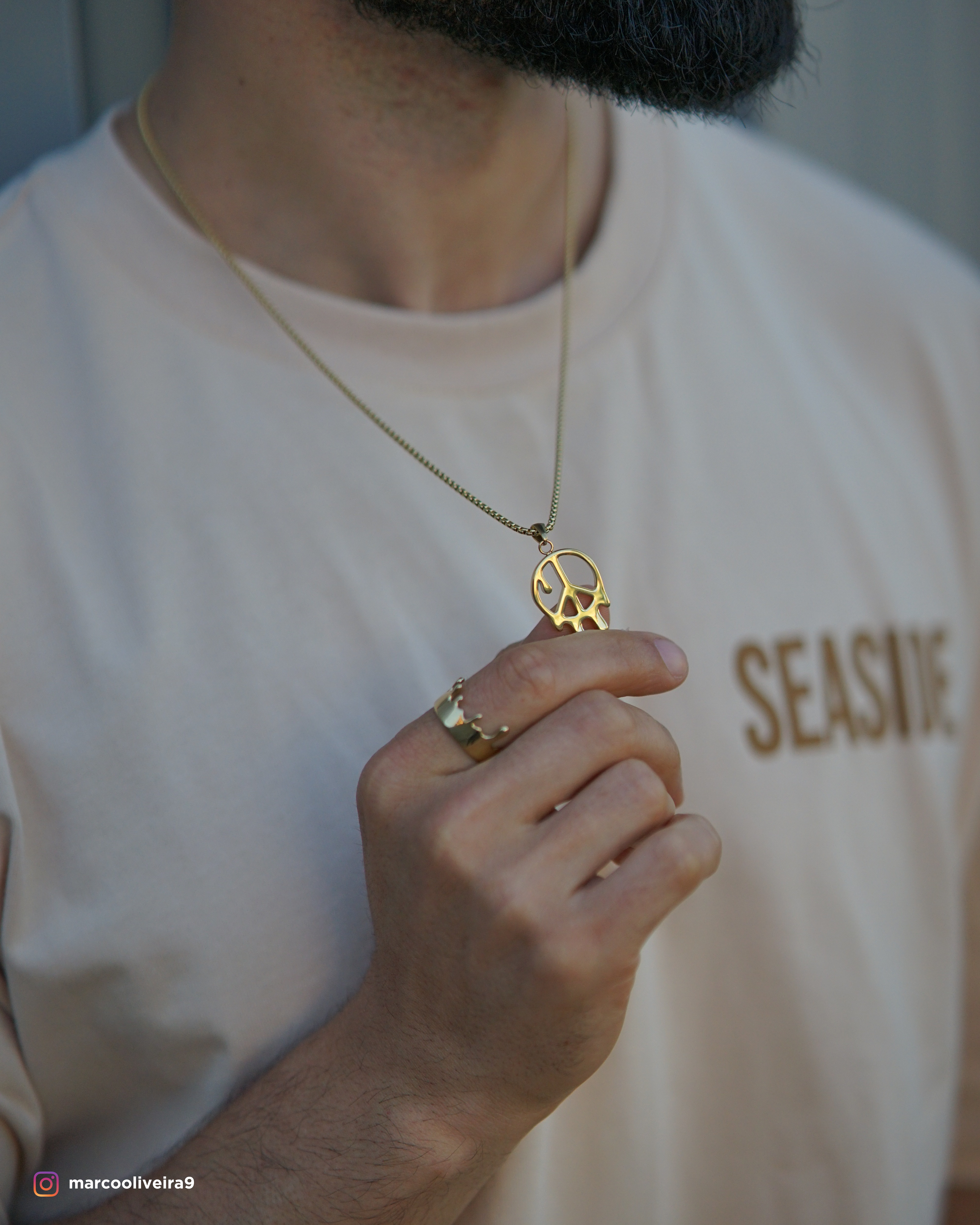 Auksinės spalvos chirurginio plieno žiedas su kompaso ženklu