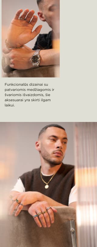 Atsparūs vandeniui chirurginio plieno apyrankės, žiedai ir kaklo papuošalai suteikia jūsų kasdieniam įvaizdžiui stiliaus ir užtikrintumo.