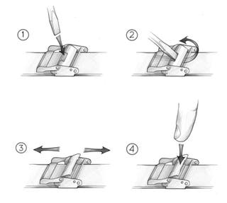 - Nikite reguliuojamą sagtelę į norimą padėtį (įsitikinkite, kad sagtis yra nustatyta į vieną iš juostos nugaros įdubimų).